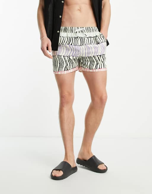 Native Youth - Short de bain à imprimé linéaire - Noir/rose - PINK