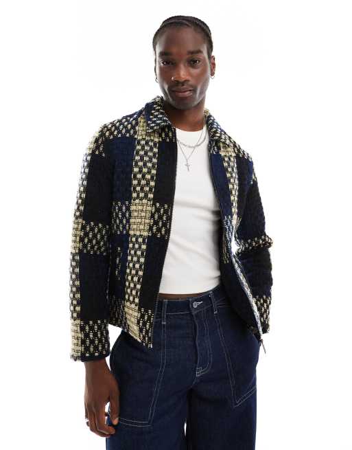 Native Youth - Veste à carreaux en jacquard épais - Bleu marine