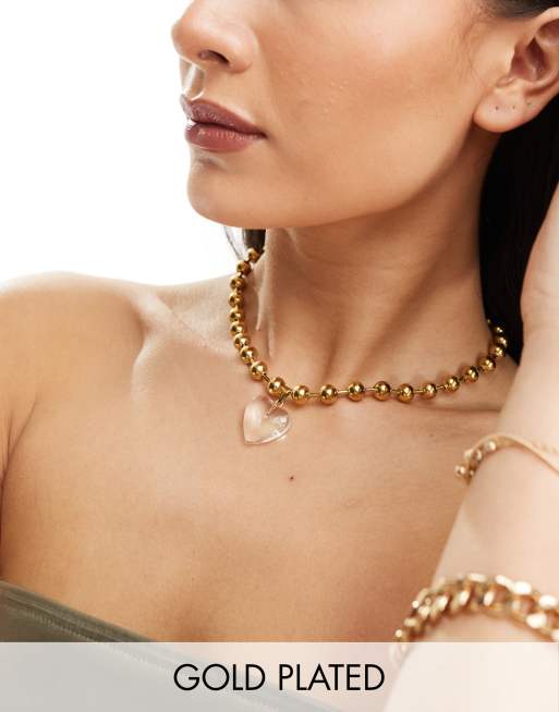 Neck On The Line - Cleo - Collier chaîne en acier inoxydable plaqué or à pendentif cœur transparent