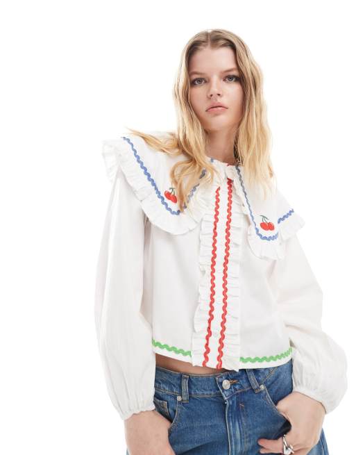 Neon Rose - Blouse avec col oversize à motif cerises - Blanc