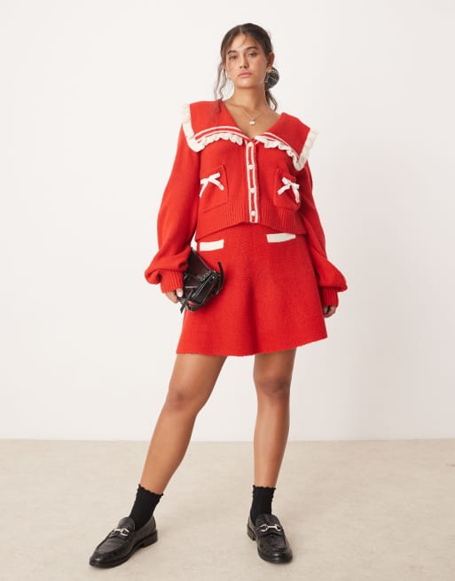 Neon Rose - Gilet d'ensemble avec col volanté - Rouge
