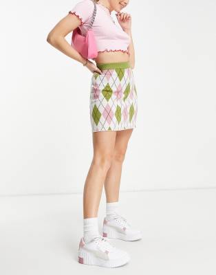 Neon Rose - Mini-jupe d'ensemble en maille à motif losanges