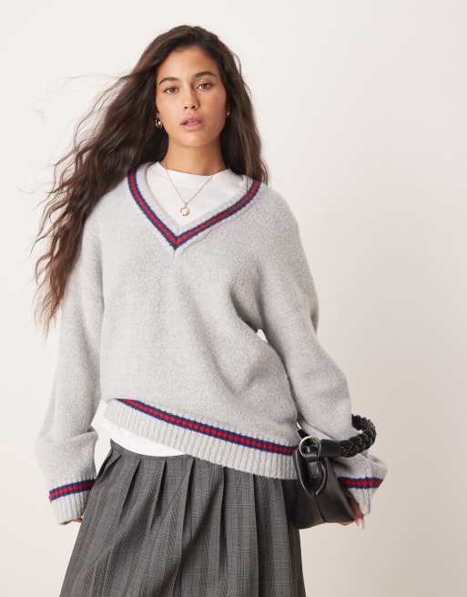 Neon Rose - Pull style uniforme à bordures contrastantes - Gris
