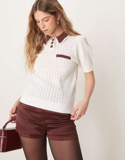 Neon Rose - Sweat cout à enfiler en maille pointelle - Crème