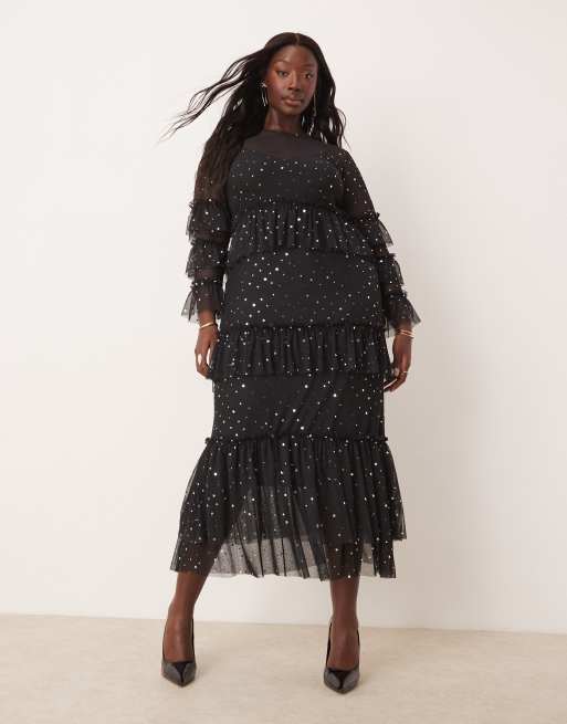 Never Fully Dressed Plus - Robe longueur mollet en tulle à imprimé étoiles - Noir