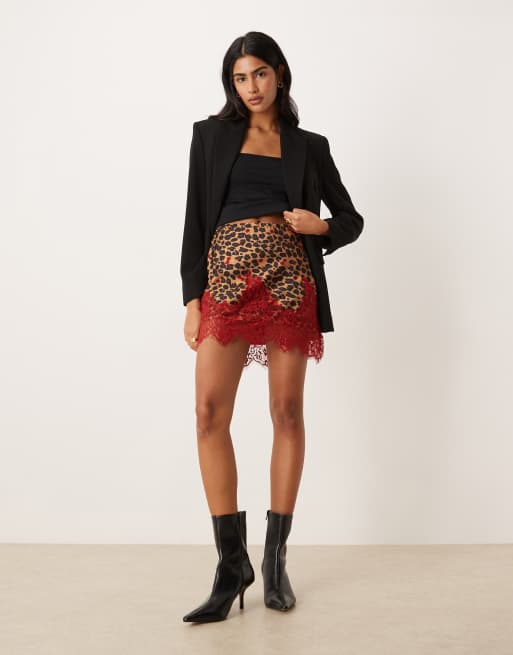 Never Fully Dressed - Maeva - Mini-jupe en satin bordée de dentelle - Cerise à imprimé léopard