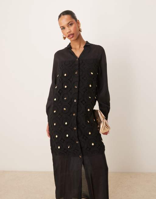 Never Fully Dressed - Robe chemise longue au crochet - Noir