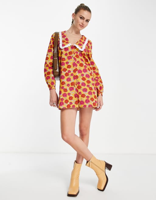 Never Fully Dressed - Robe courte oversize avec col et imprimé fleurs - Jaune