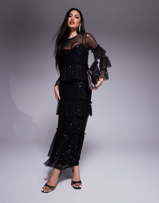 Never Fully Dressed - Robe longueur mollet en tulle à imprimé étoiles - Noir