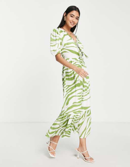 Never Fully Dressed - Robe mi-longue à imprimé zèbre - Vert