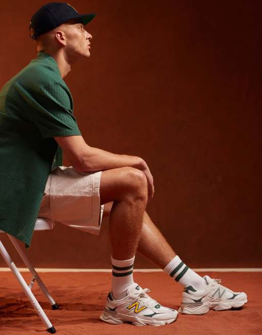 Exclusivité ASOS - New Balance - 9060 - Baskets style universitaire - Blanc, vert et doré