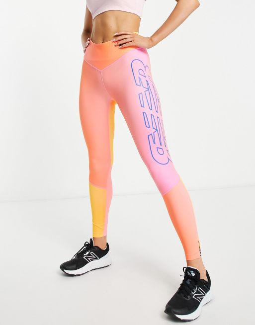 New Balance - Achiever - Legging à logo dégradé - Orange et rose