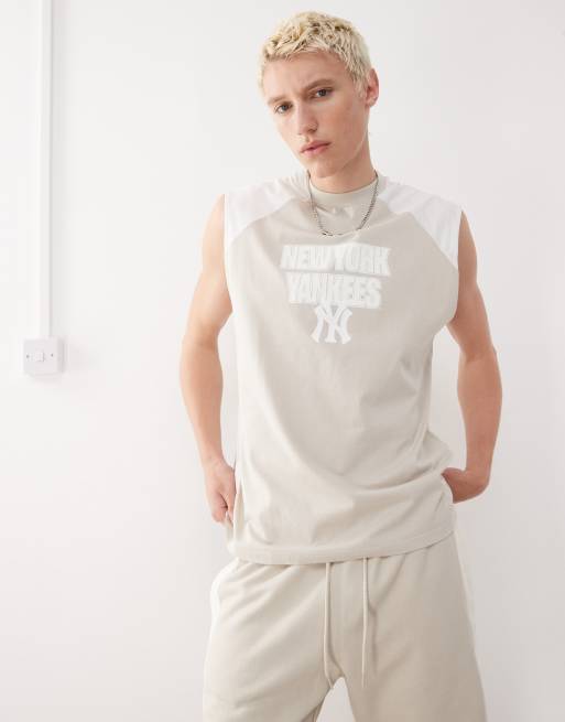 New Era - Débardeur d'ensemble à manches raglan et motif NY Yankees - Crème