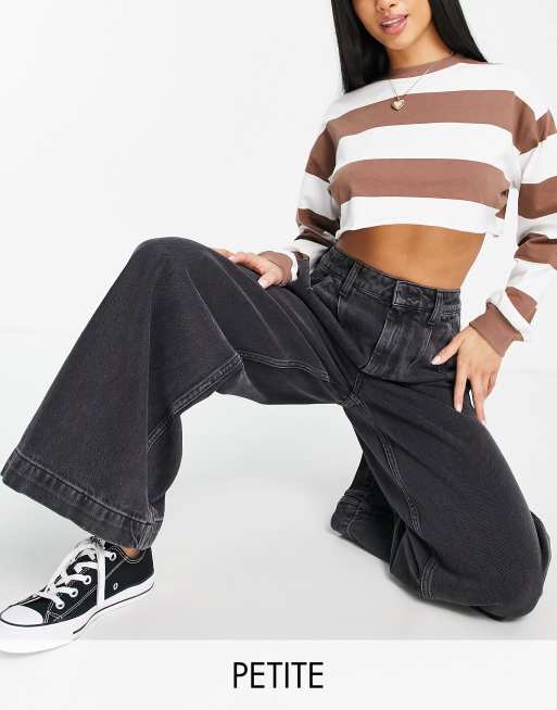 New Look Petite - Jean à pinces coupe large - Noir délavé