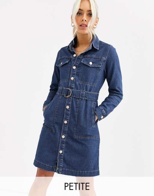New Look Petite - Robe chemise en jean à ceinture - Bleu