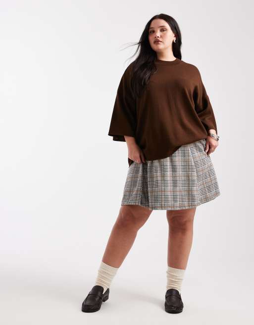 New Look Curve - Mini-jupe virevoltante à carreaux - Noir