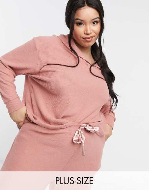 New Look Curve - Top confort d'ensemble côtelé doux à capuche - Rose