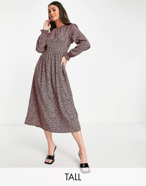 New Look Tall - Robe mi-longue à col montant - Noir fleuri