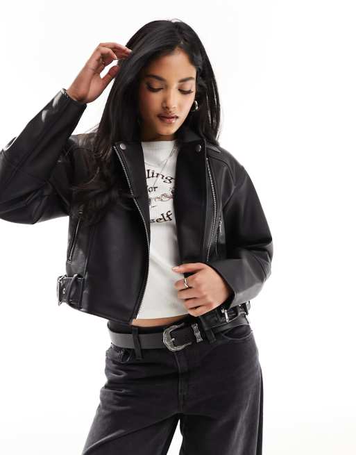 New Look - Bomber court en PU - Noir
