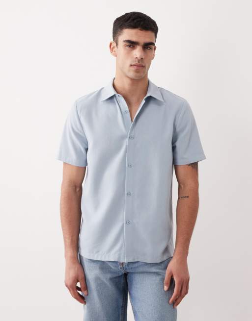 New Look - Chemise à revers aspect lin - Bleu clair