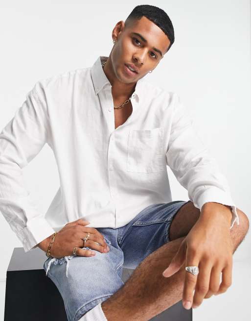 New Look - Chemise oversize à manches longues en lin mélangé - Blanc