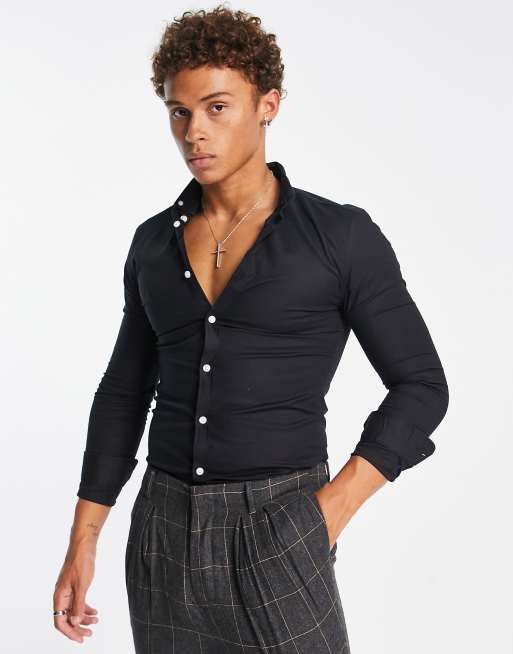 New Look - Chemise oxford moulante manches longues - Noir