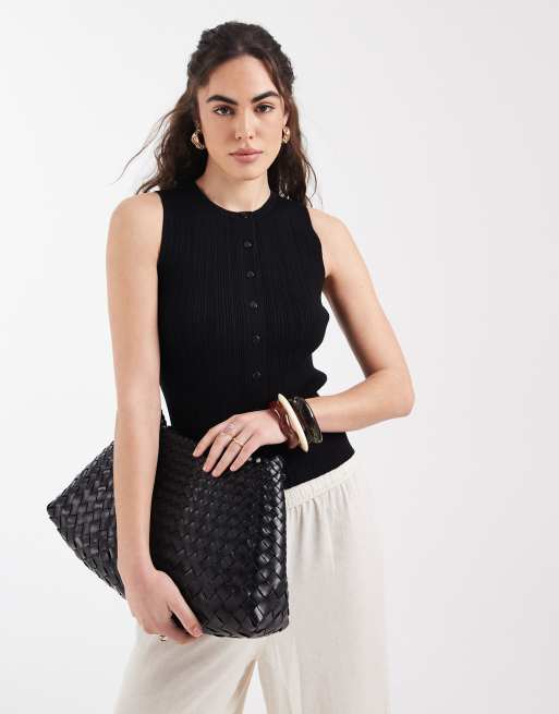 New Look - Débardeur boutonné en maille côtelée - Noir