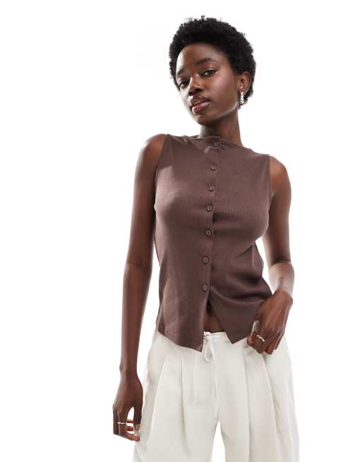 New Look - Débardeur boutonné - Marron