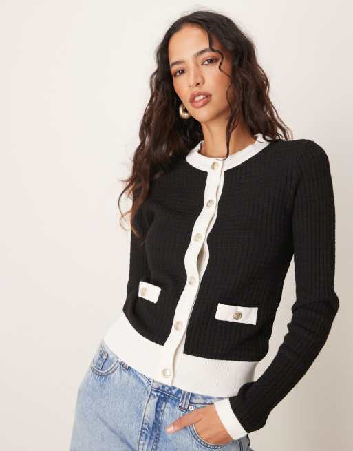 New Look - Gilet boutonné à bordures blanches - Noir