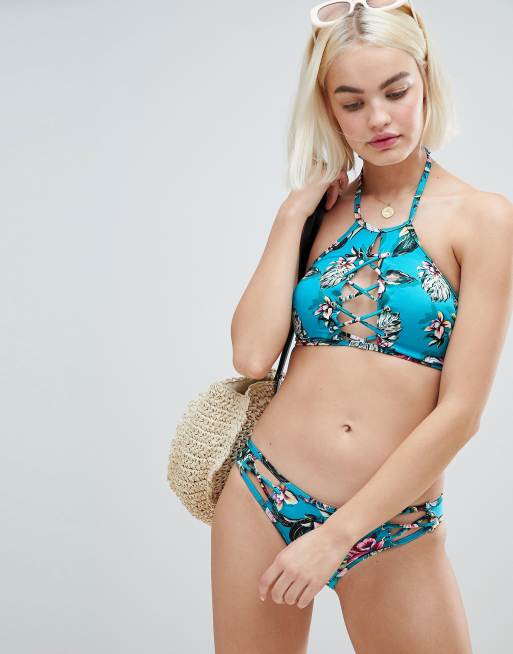 New Look - Haut de bikini court à lacets et imprimé tropical
