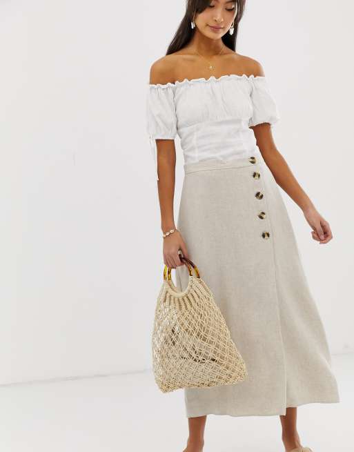 New Look - Jupe à boutons - Taupe