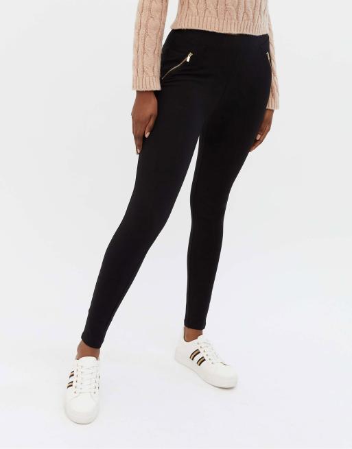 New Look - Legging taille haute à fermeture éclair - Noir