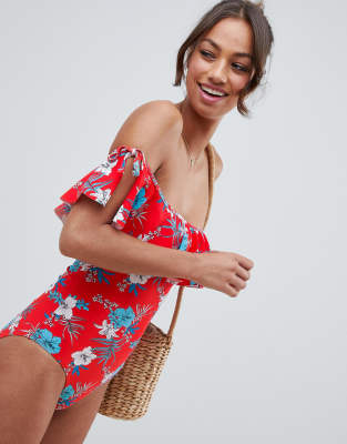 New Look - Maillot 1 pièce style Bardot avec deux volants