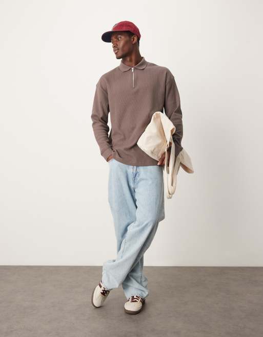 New Look - Polo texturé à manches longues - Marron moyen
