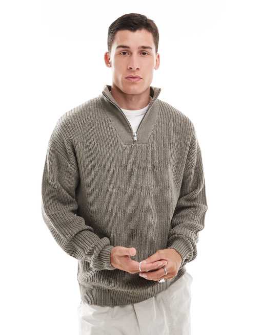 New Look - Pull à col zippé et côtes anglaises - Marron
