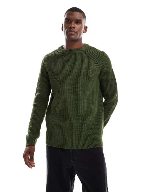 New Look - Pull en maille à côtes anglaises - Vert foncé