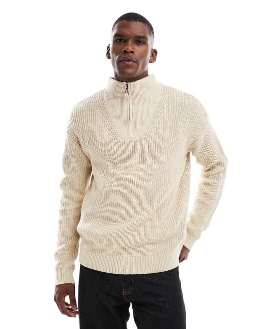 New Look - Pull en maille style pêcheur à col zippé - Grège