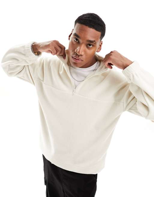 New Look - Pull en polaire à col cheminée zippé - Blanc cassé