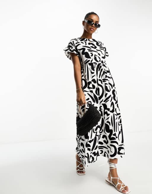 New Look - Robe babydoll mi-longue à manches courtes - Imprimé noir