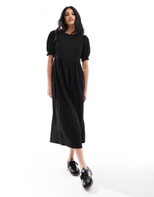 New Look - Robe babydoll mi-longue et unie - Noir