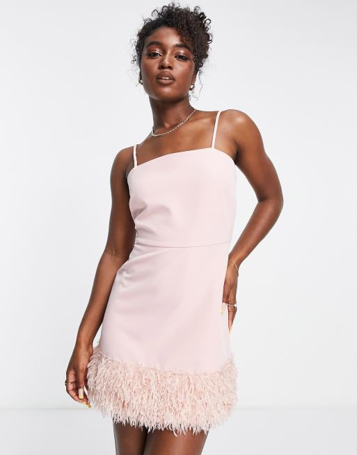 New Look - Robe en tissu satiné avec ourlet duveteux - Rose