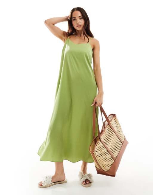 New Look - Robe mi-longue à bretelles en satin uni - Vert