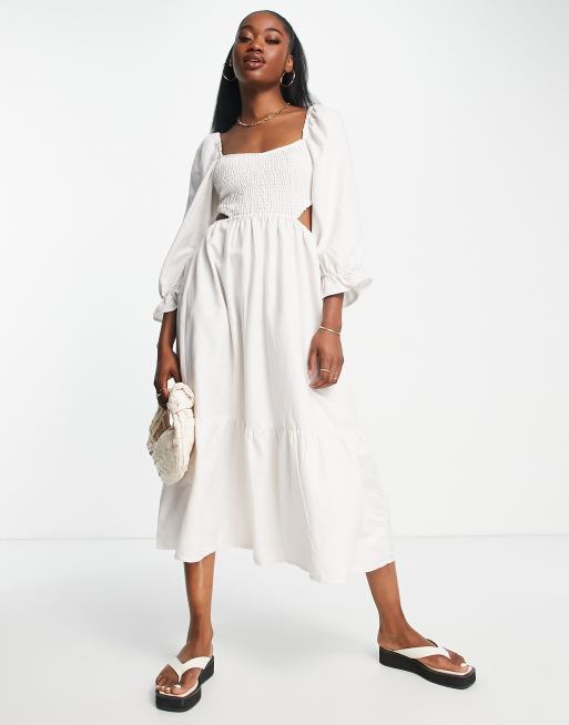New Look - Robe mi-longue à manches bouffantes avec découpes - Blanc