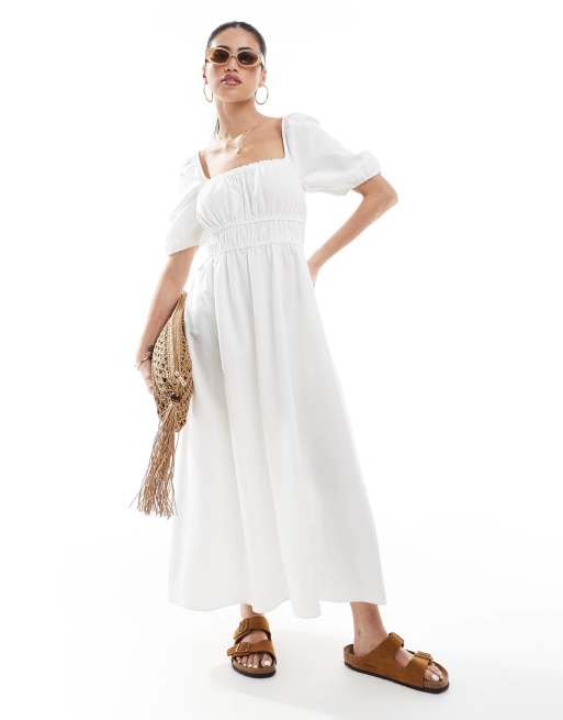 New Look - Robe tendance folk à manches bouffantes - Blanc