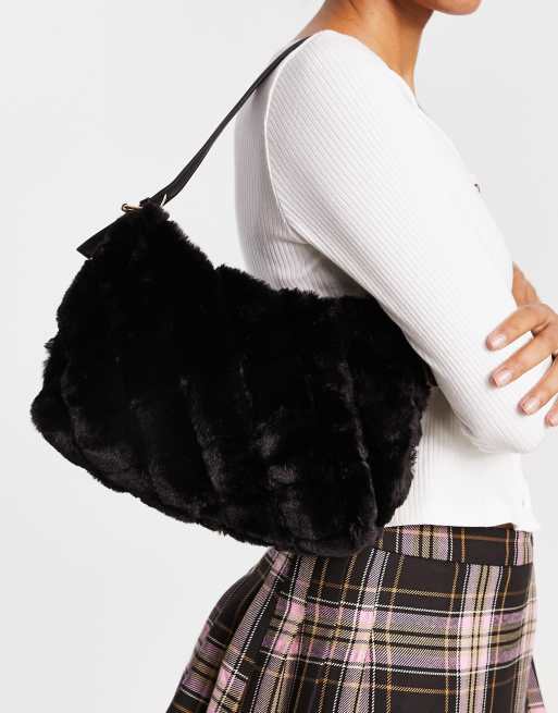 New Look - Sac porté épaule matelassé en fausse fourrure - Noir