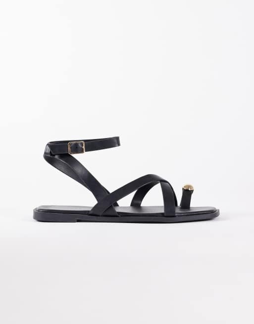 New Look - Sandales avec brides multiples et boucle d'orteil dorée - Noir