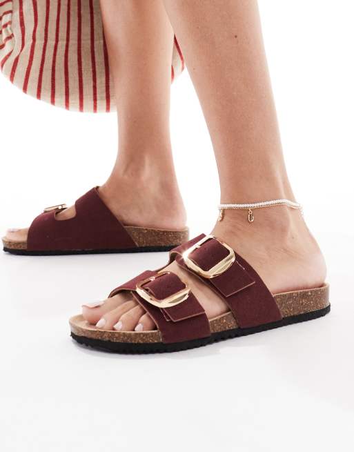 New Look - Sandales plates à deux sangles - Bordeaux