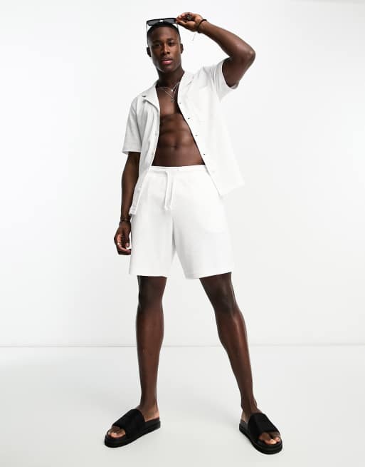 New Look - Short d'ensemble gaufré avec revers - Blanc
