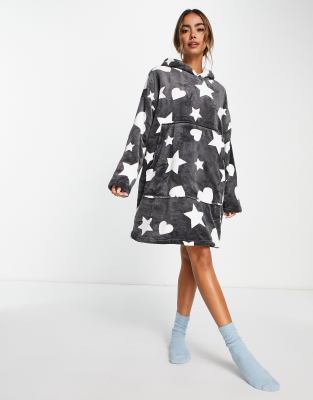 New Look - Sweat à capuche oversize doublé de polaire motif cœurs et étoiles