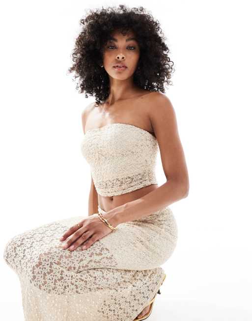 New Look - Top bandeau d'ensemble en dentelle - Blanc cassé